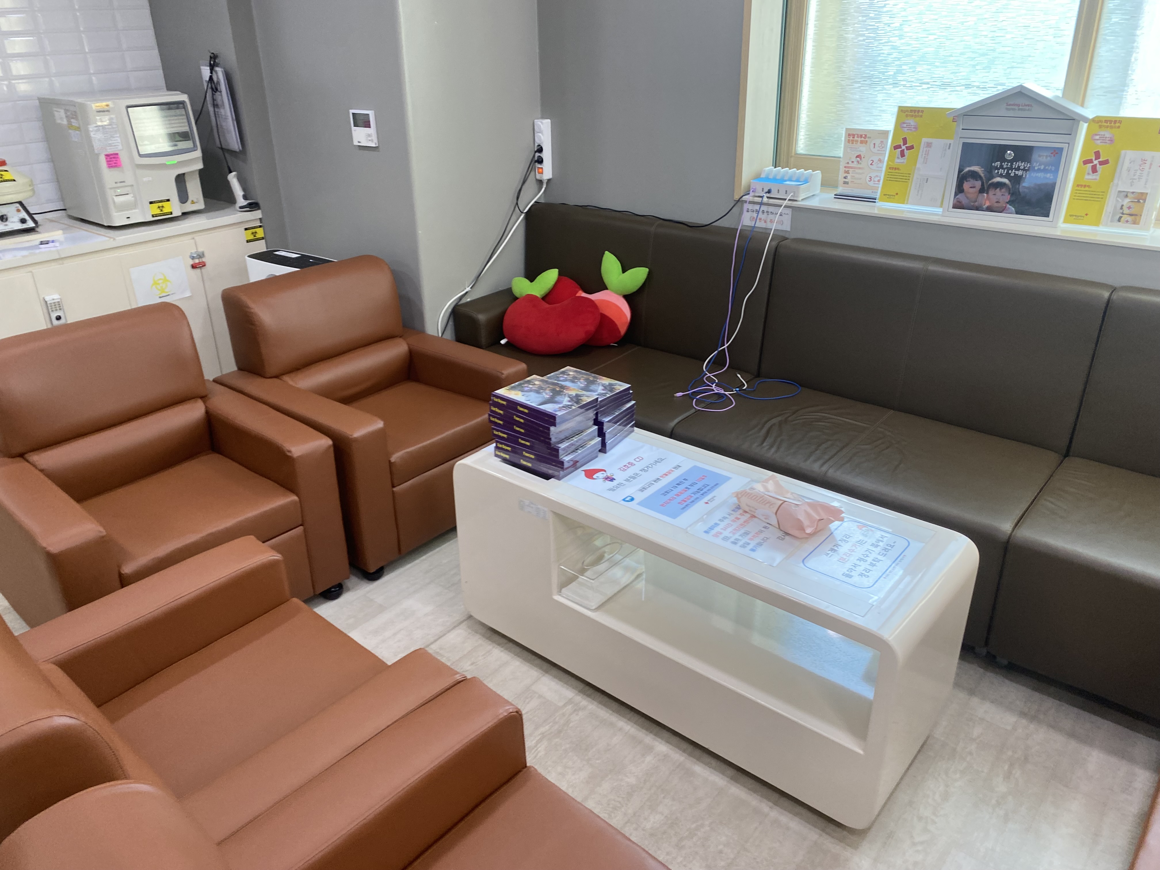 헌혈후 침대에서 10여분 정도 휴식을 취합니다.