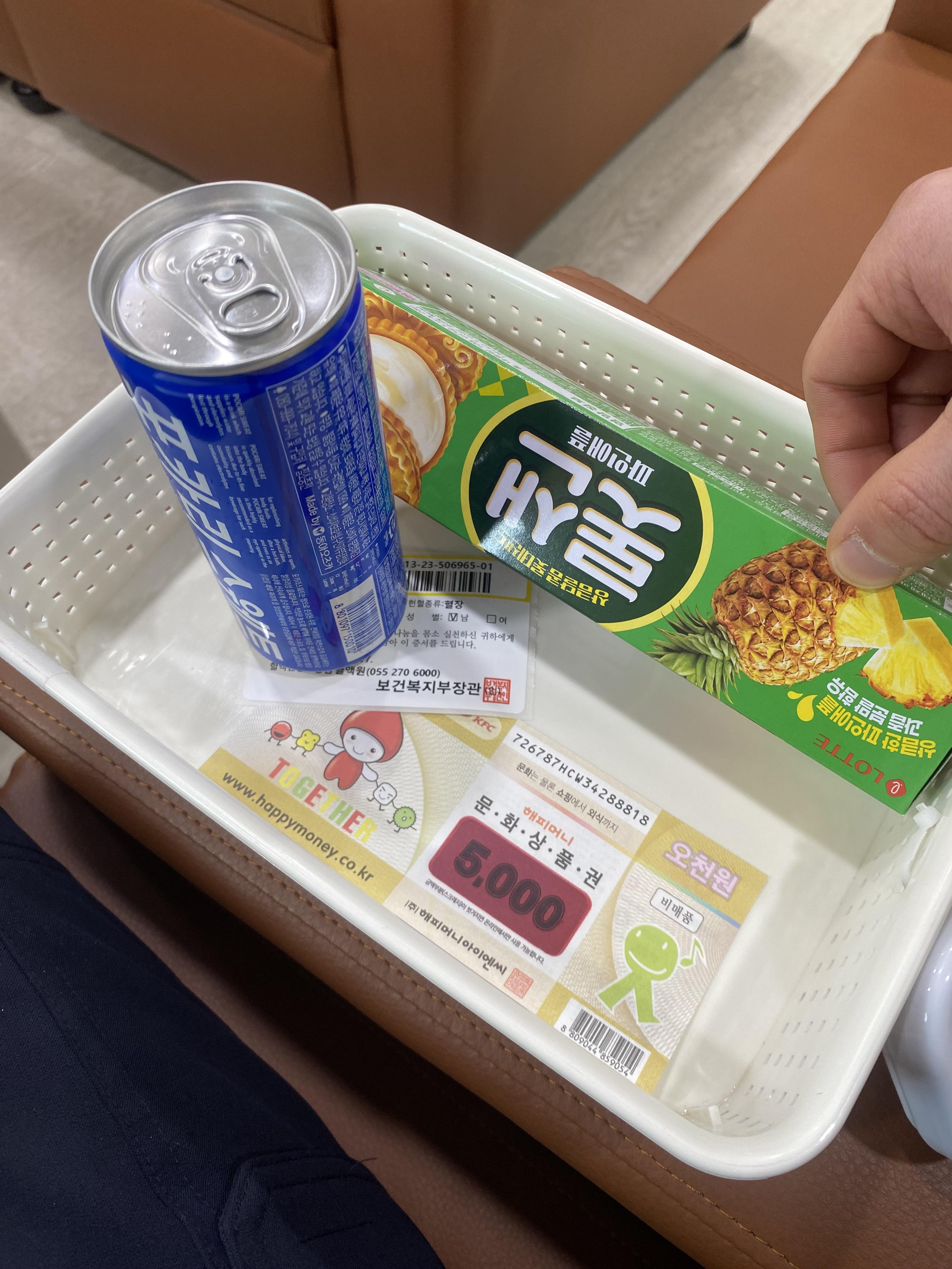 헌혈후의 기념품을 확인해 봅니다.