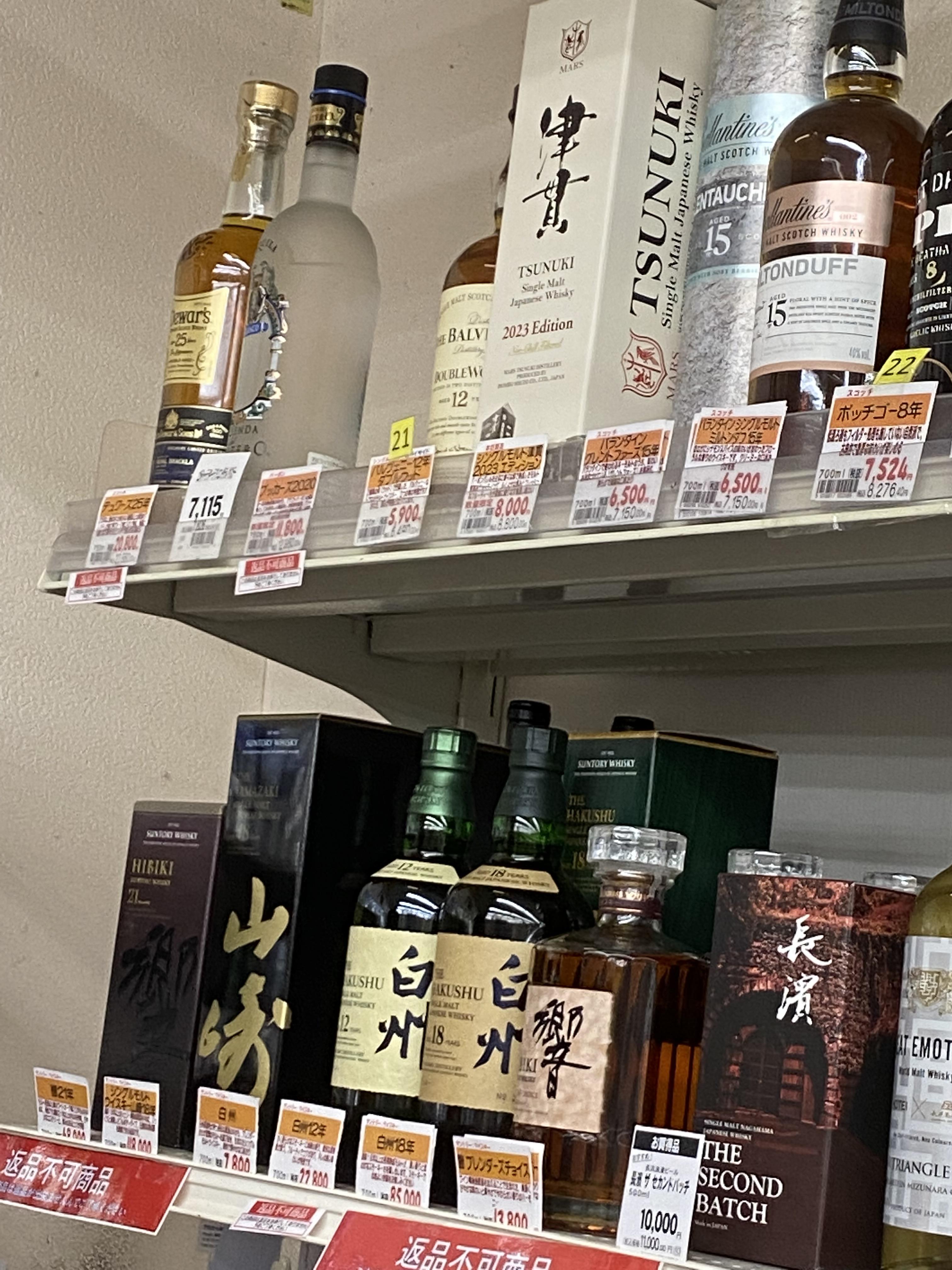 일본위스키는 이제 정가의 2배 이상으로 책정된것이 기본으로 자리 잡았고 양심적인 가격에 판매하는 곳은 찾아 보기 힘들어 일본여행중에 일본위스키를 발견하시더라도 국내보다 조금 저렴한 가격에 구입할수 있다 뿐이지 정가 대로 구매하기는 힘들것 같습니다.
