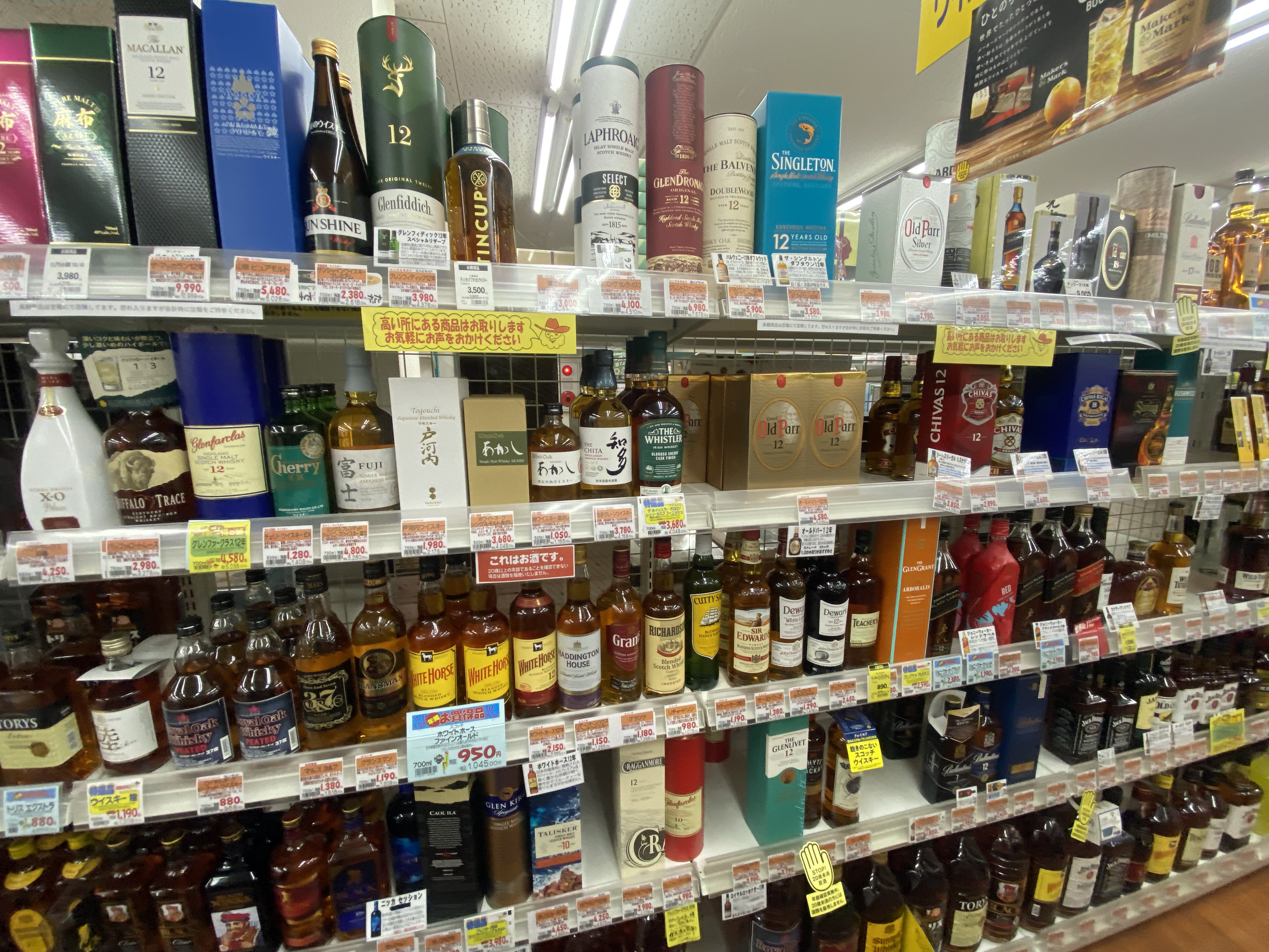 조금 적은 편이 였습니다. 주로 일반적은 짐빔 이나 산토리 등의 위스키만 판매하는것 같은 느낌이였습니다
