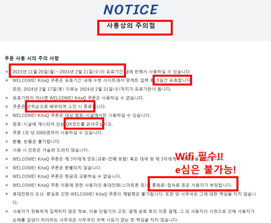 쿠폰뒤에는 이런 설명 사항이 있는데