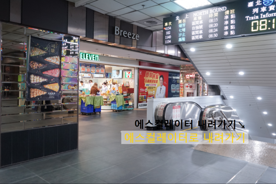 세븐일레븐 앞의 에스컬레이터로