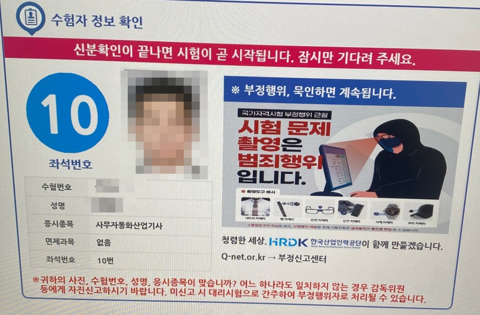 수험번호 및 인적사항이 확실히