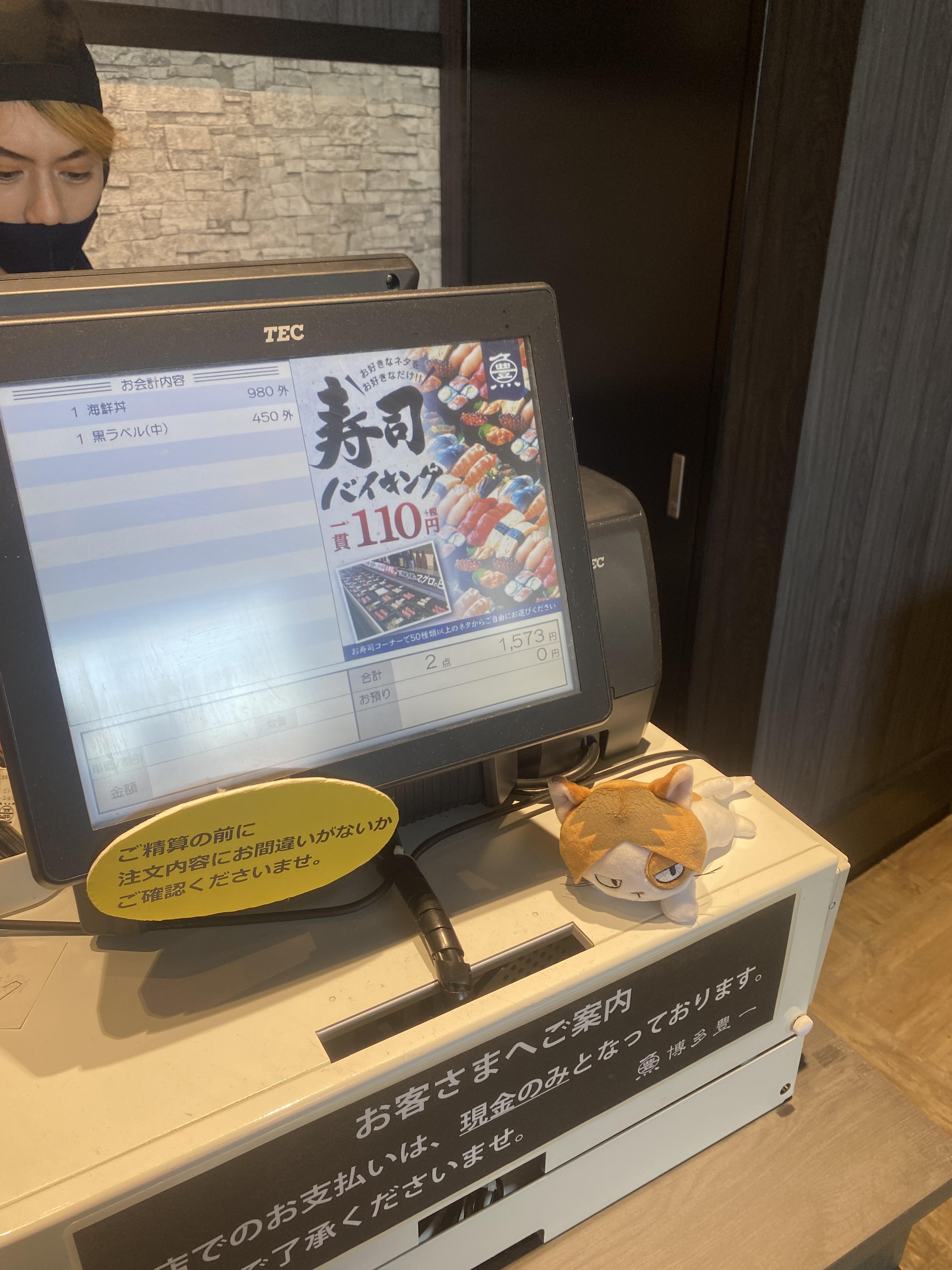 전부터 100엔에 1피스를 집어 카운터에서 계산하는 방식입니다.