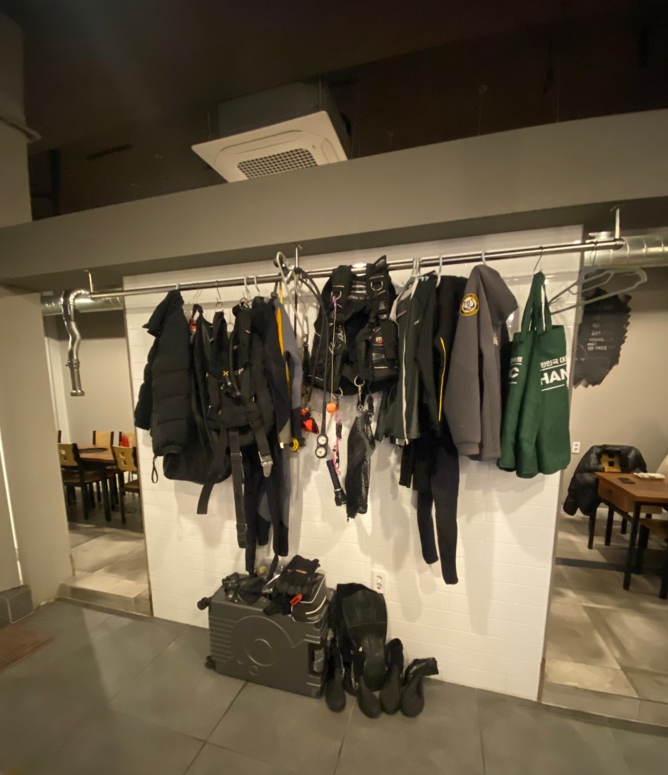 스쿠버 복장이 많이 있네요.