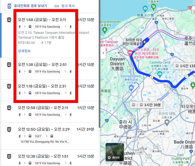 타이완 타오위안 국제공항에서 타이베이 버스 스테이션(으)로