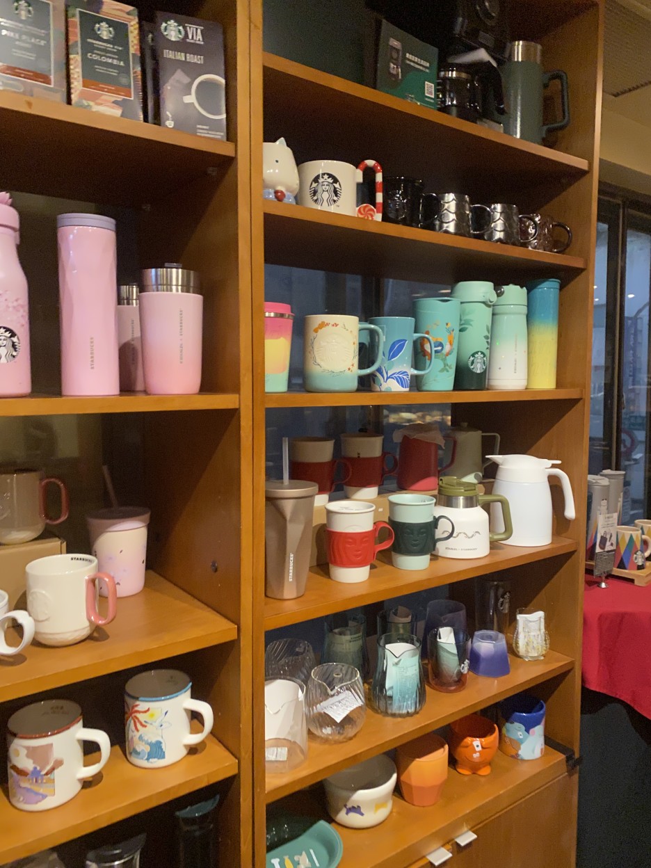 각종 스벅터블러와 커피를 팔고