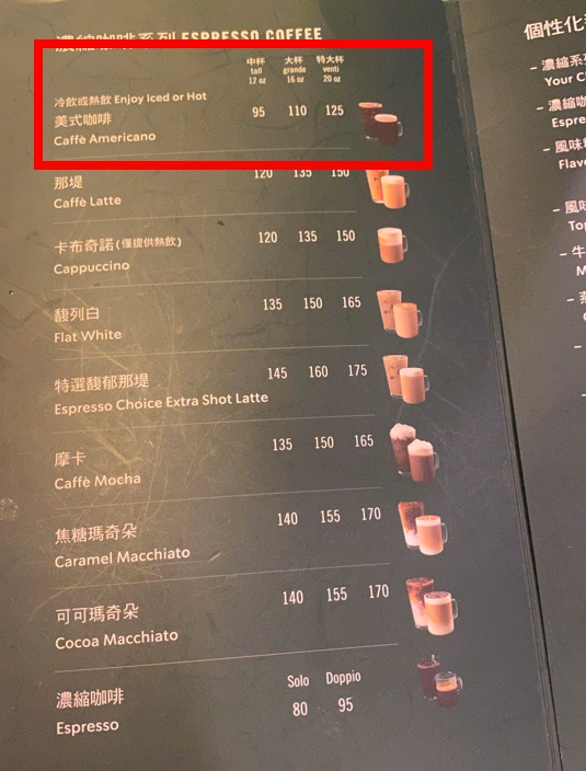 아메리카노 Tall 사이즈를 주문해 볼게요