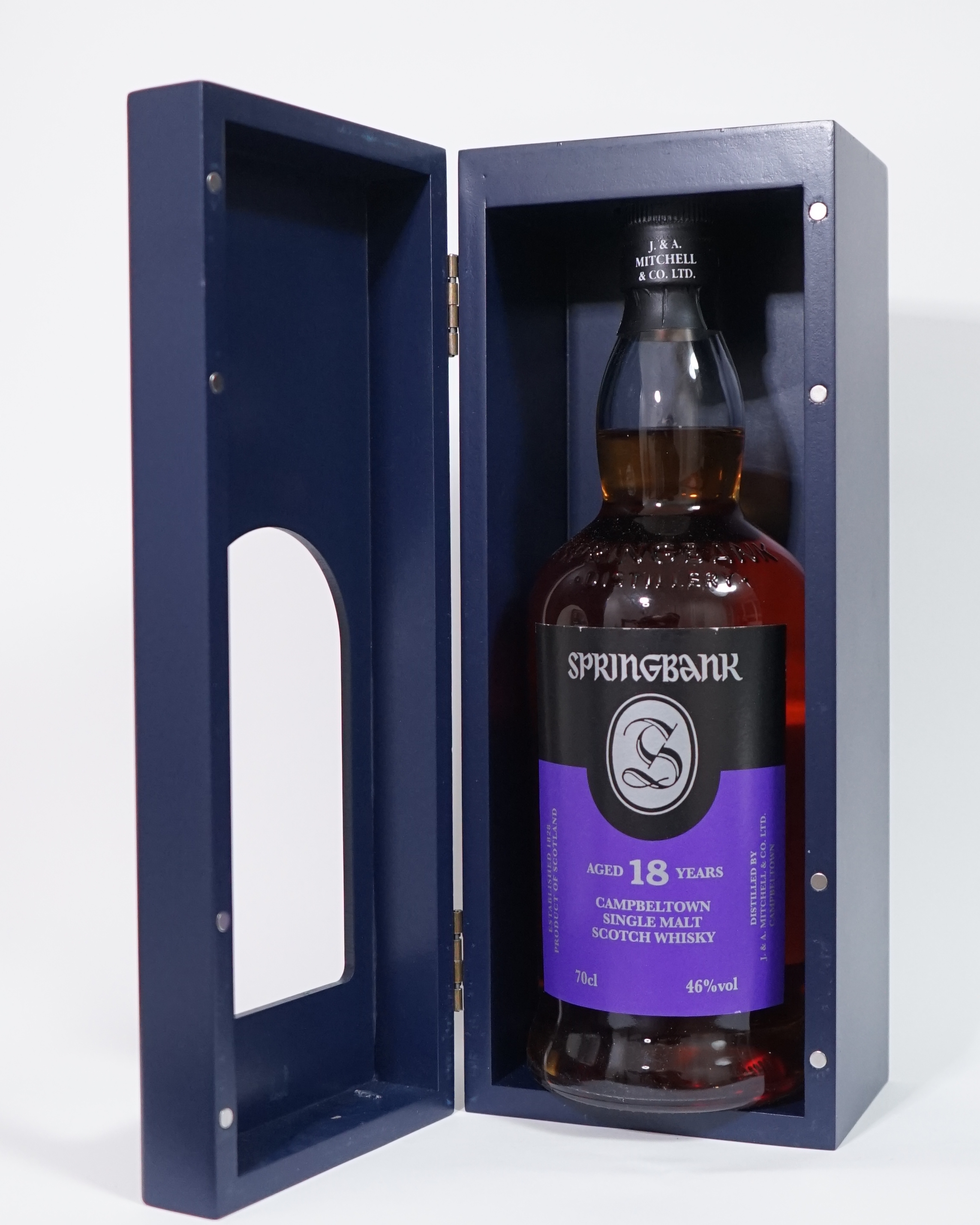 스프링뱅크 18년은 캠벨타운 지역의 스프링뱅크 증류소에서 생산하는 싱글몰트 위스키입니다. 100% 맥주 즙을 사용하고 2.5회 증류 과정을 거쳐 생산하며, 버번 캐스크, 셰리 캐스크, 포트 캐스크에서 숙성됩니다.