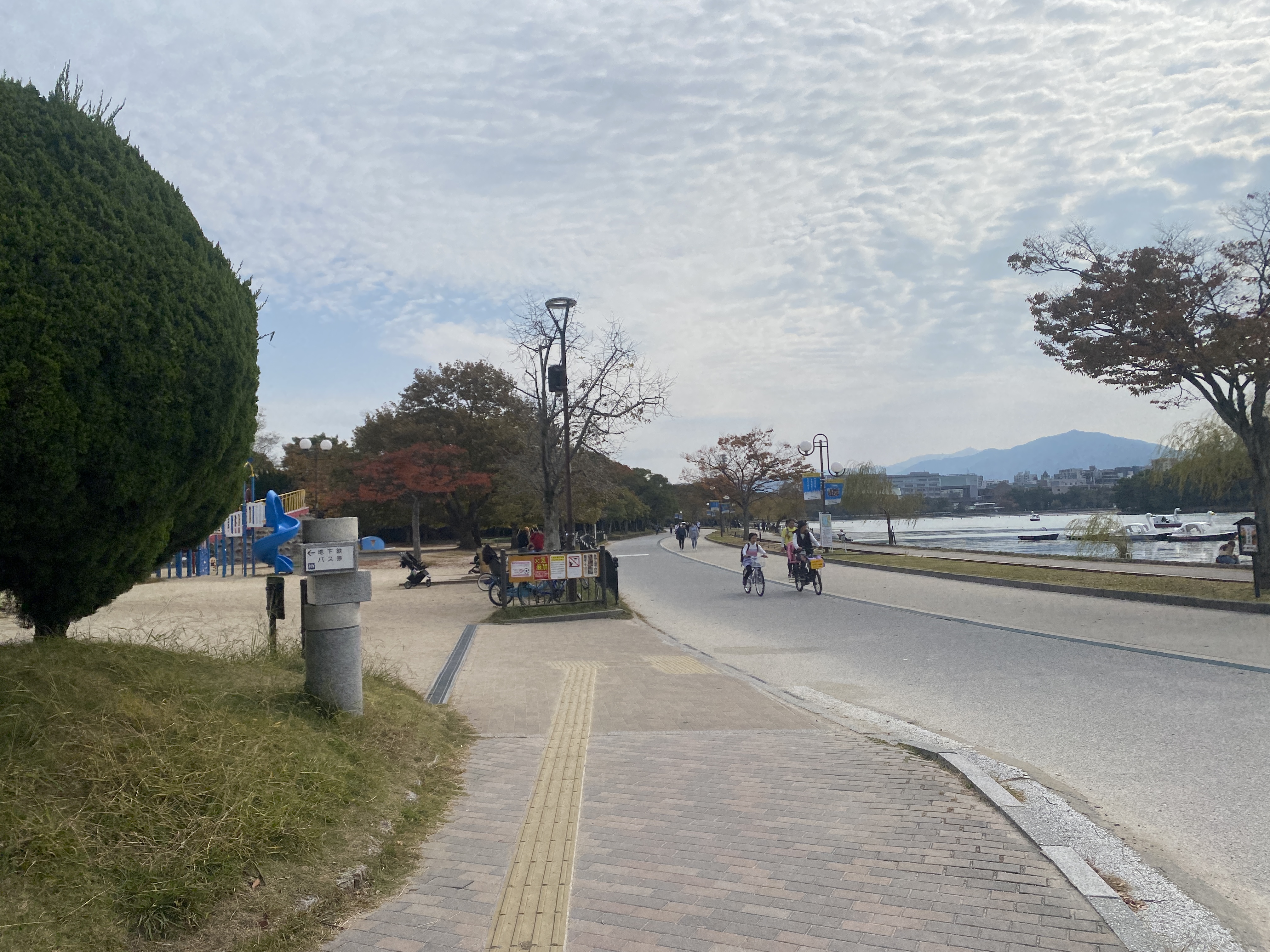 오호리공원에는 특이하게 호수 옆에 작은 개울가 같은것이 있는데