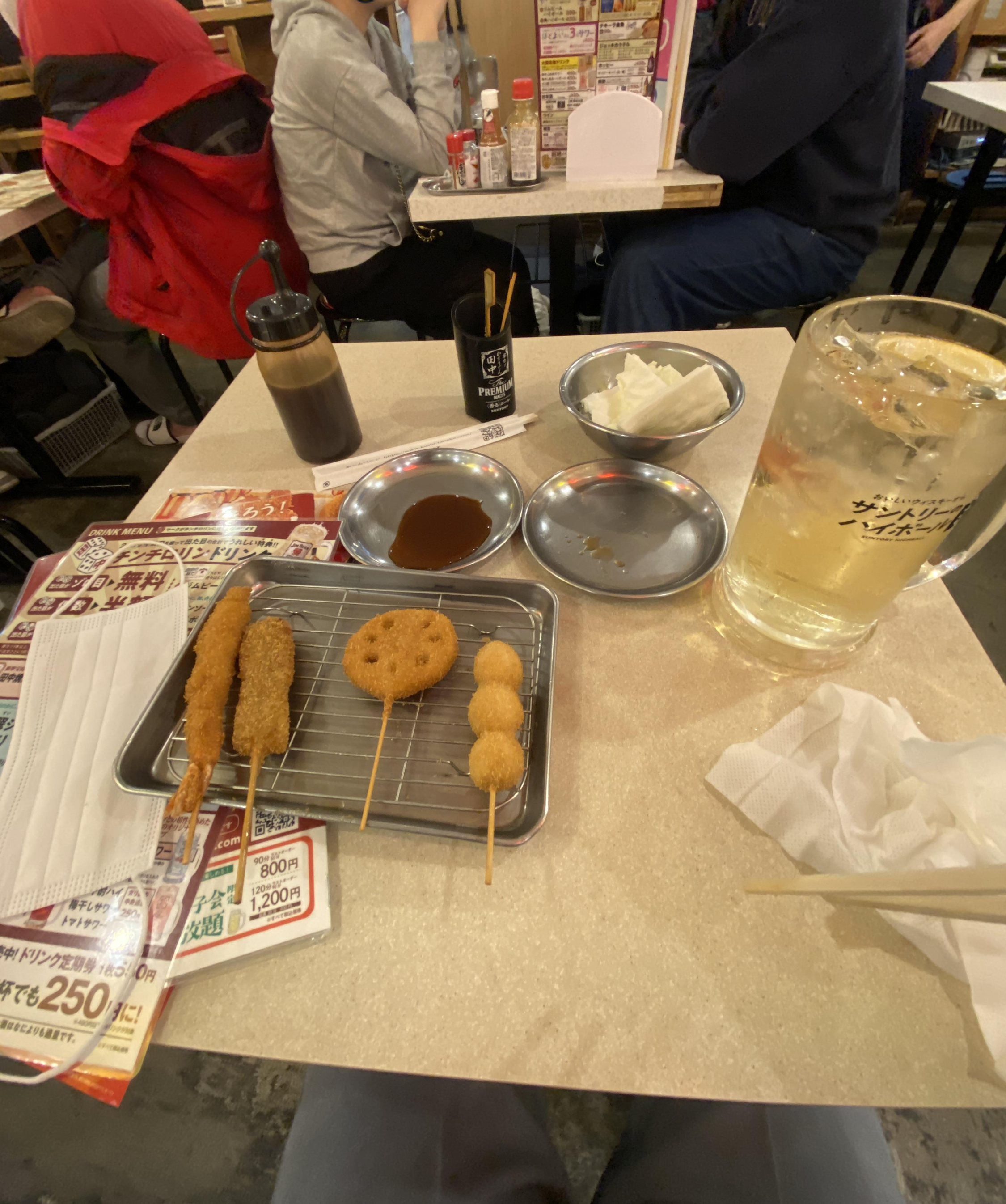 혼자서 마시는 하이볼과 쿠시가츠 입니다.