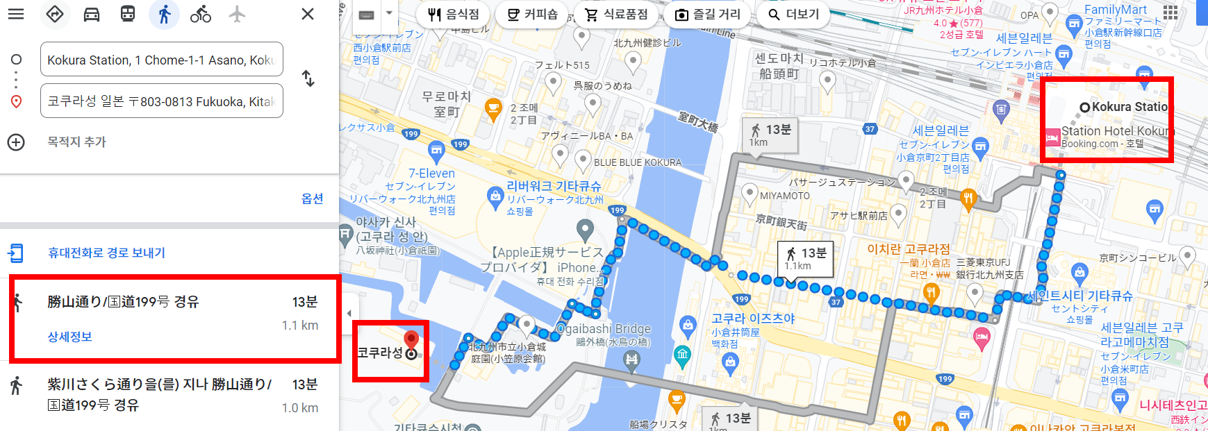 고쿠라성까지 대략